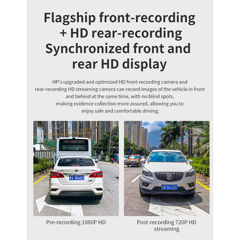 This HP F975 in-car dashcam comprehensively records your entire driving process. With 1080P ultra-high-definition resolution, it clearly captures every detail of your driving journey, providing reliable evidence for accident disputes. 1080P ultra-high-definition resolution clearly captures every detail of your driving journey, providing reliable evidence for accident disputes. 1080P ultra-high-definition resolution records every detail of your driving process, providing reliable evidence for accident disputes.