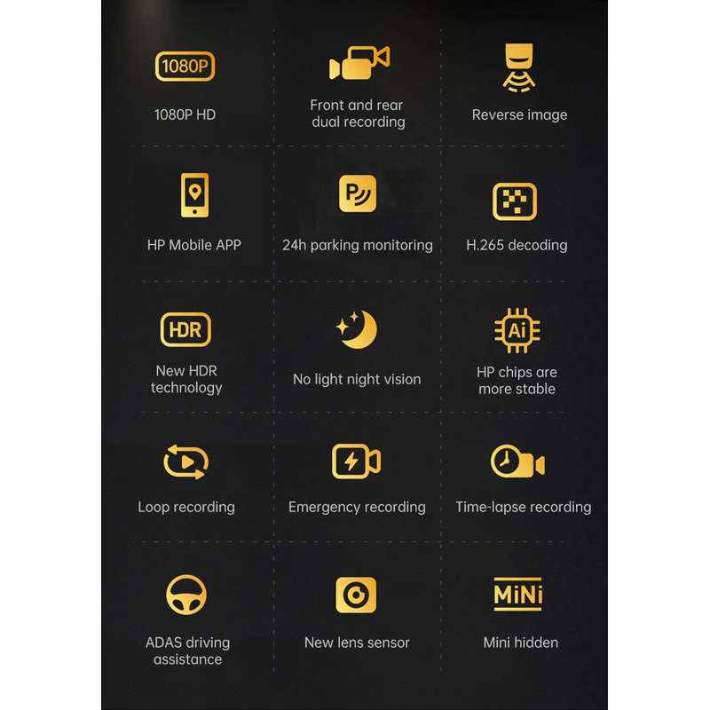 This HP F975 in-car dashcam comprehensively records your entire driving process. With 1080P ultra-high-definition resolution, it clearly captures every detail of your driving journey, providing reliable evidence for accident disputes. 1080P ultra-high-definition resolution clearly captures every detail of your driving journey, providing reliable evidence for accident disputes. 1080P ultra-high-definition resolution records every detail of your driving process, providing reliable evidence for accident disputes.