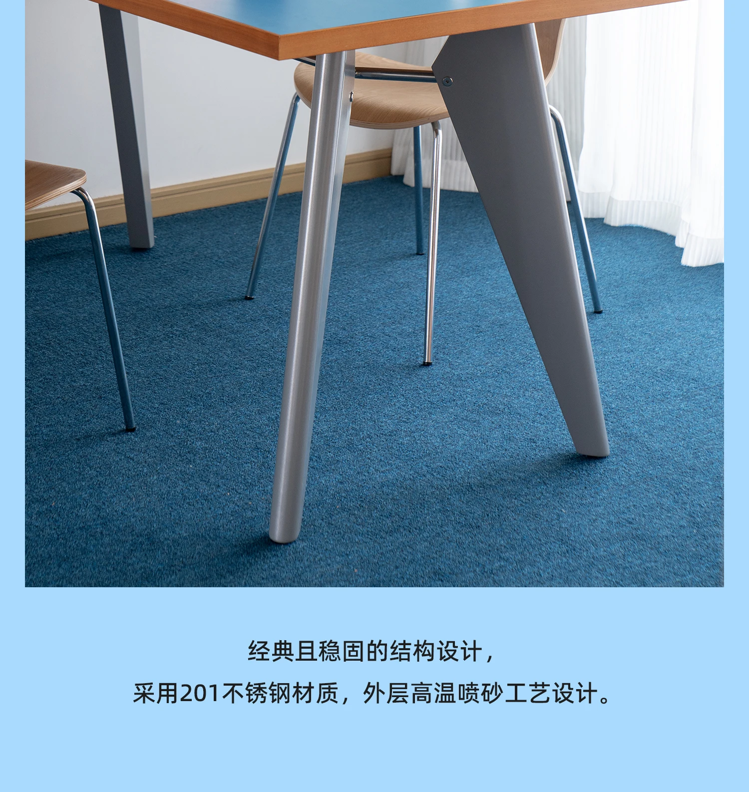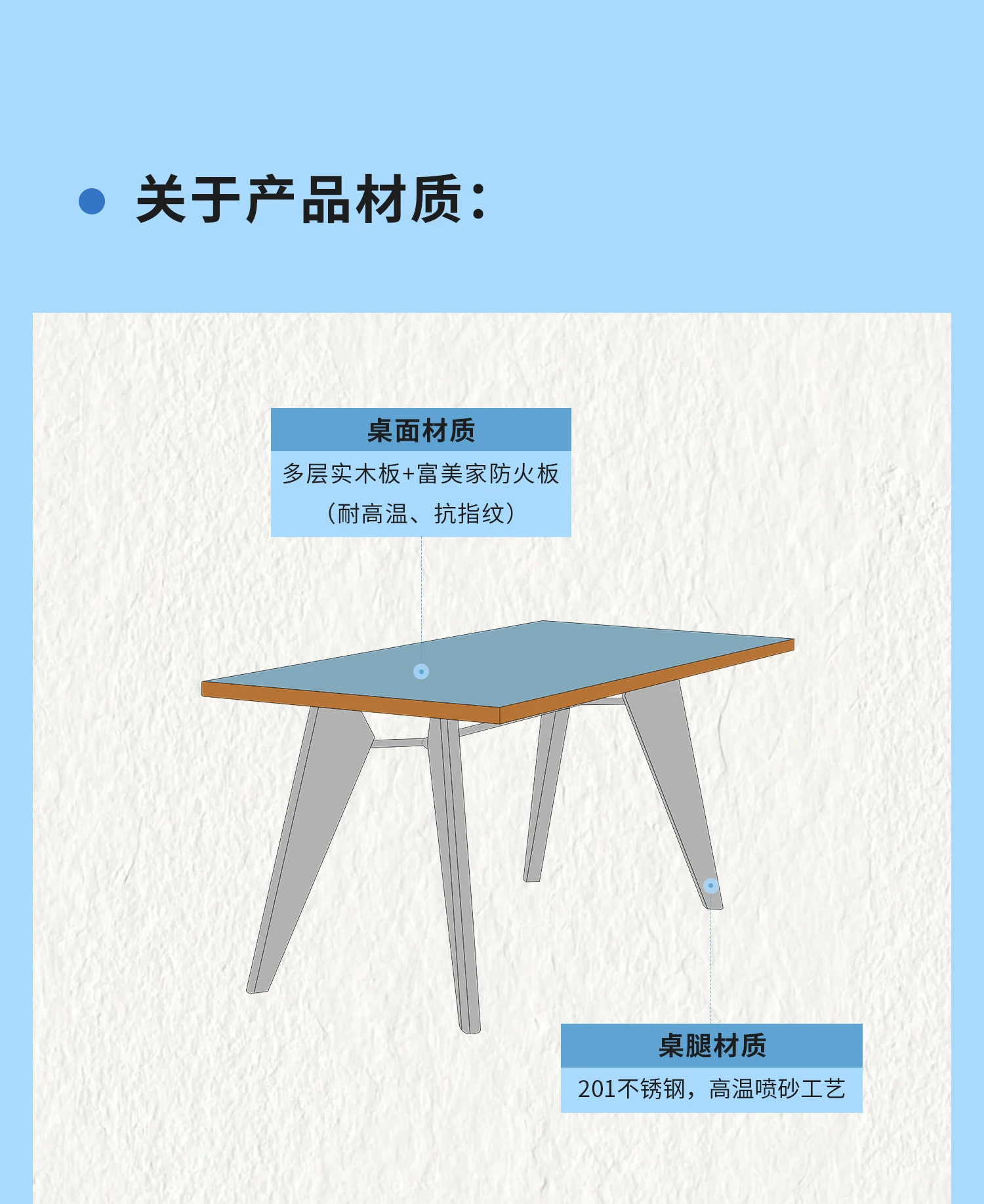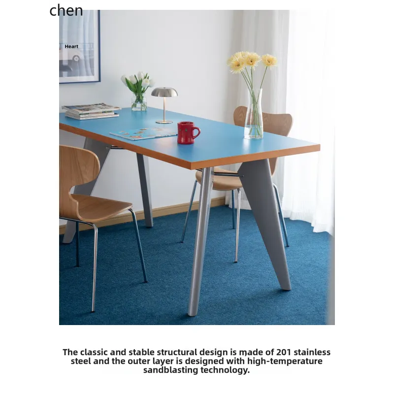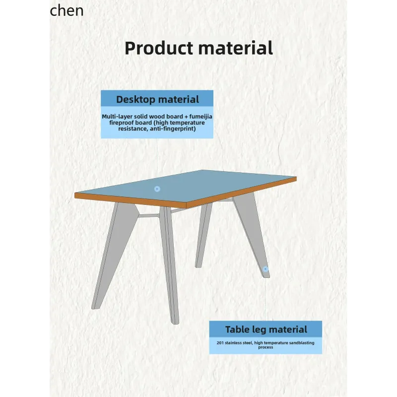 HT dining table stainless steel solid wood small apartment retro square dining table
