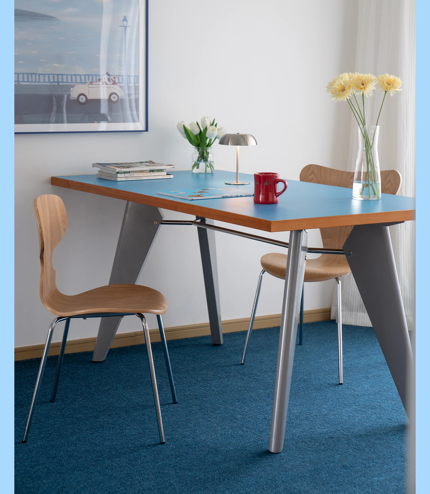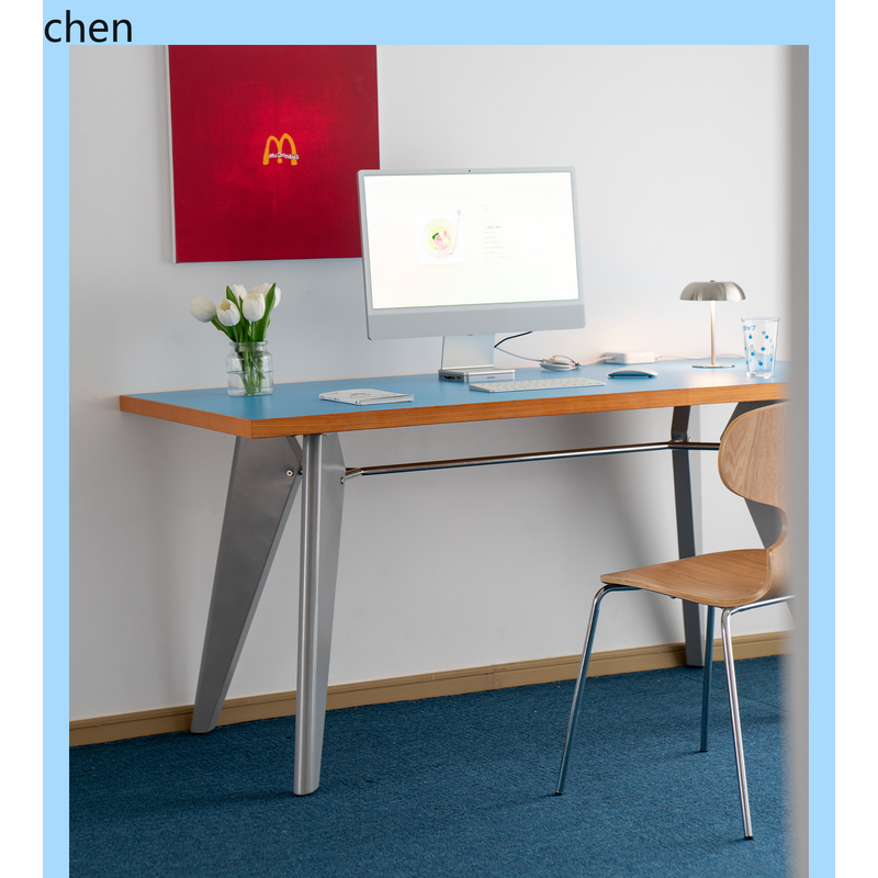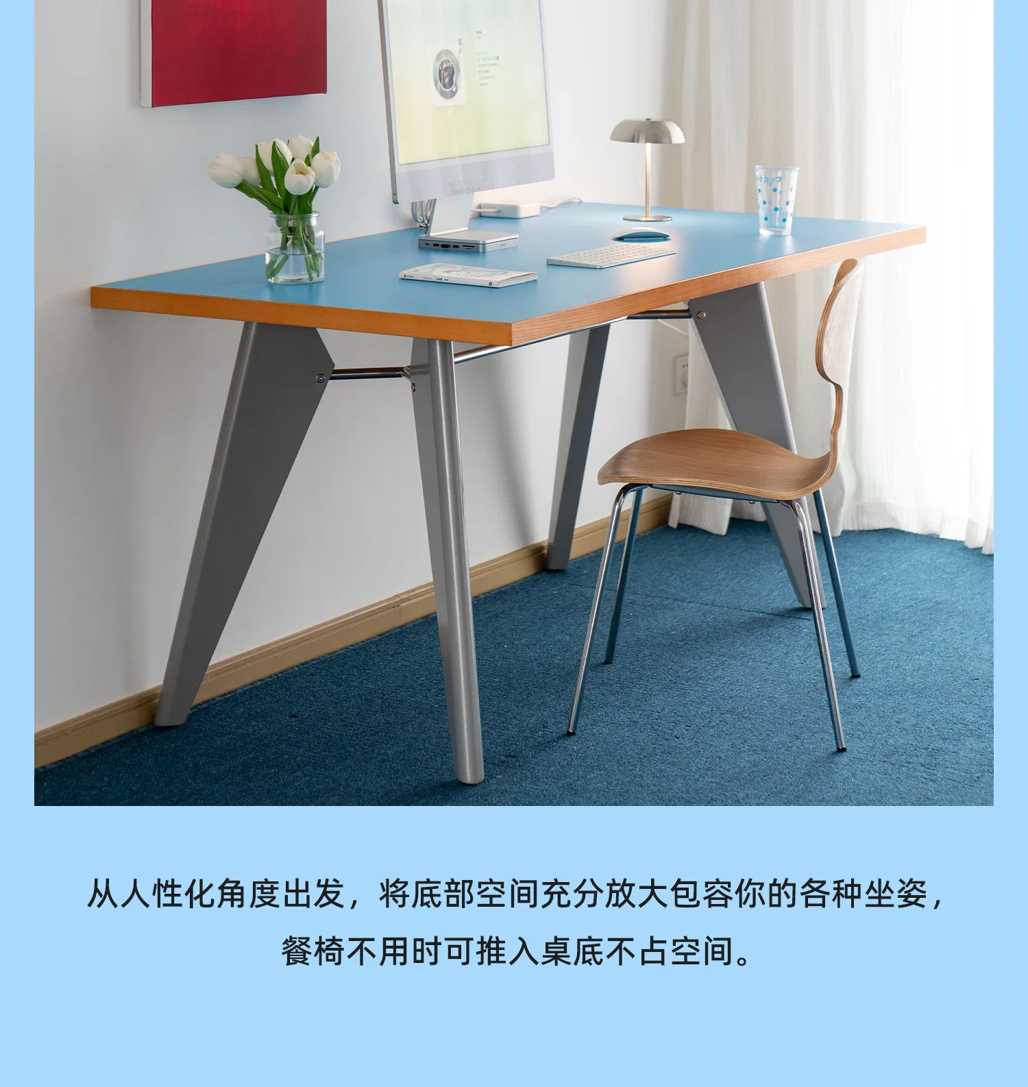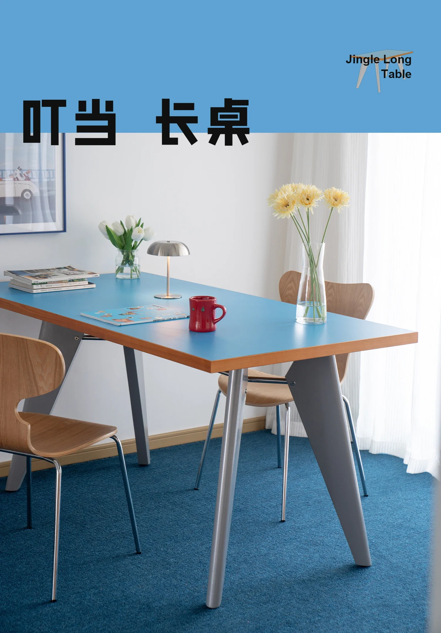 HT dining table stainless steel solid wood small apartment retro square dining table