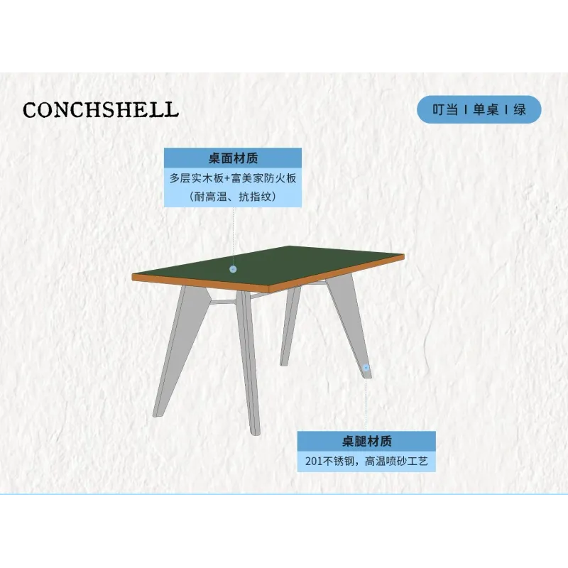 HT dining table stainless steel solid wood small apartment retro square dining table