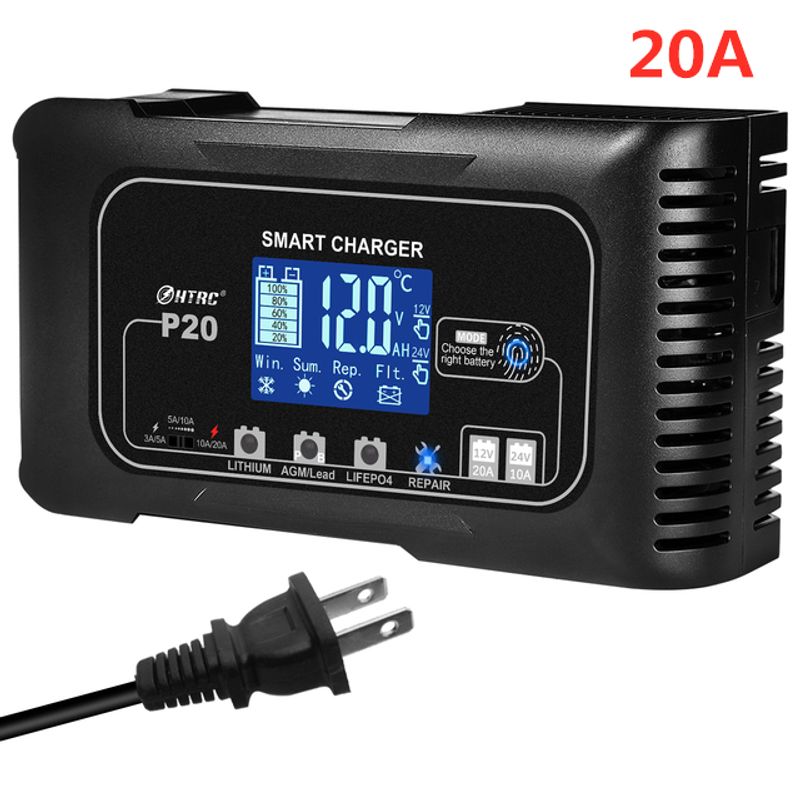 HTRC 10A/15A/20A/25A Battery Charger 12V 24V Pulse Repair Charge for Lead-Acid Lithium LiFePO4 Battery Car Motorcycle Charger