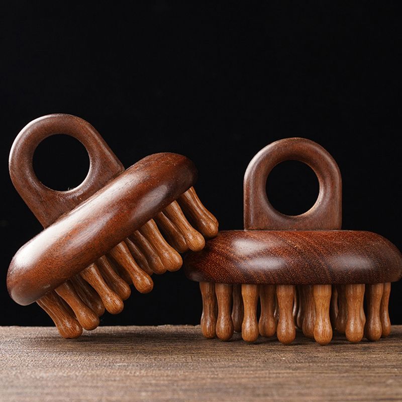 HUA Multi-Functional Massage Comb Massage Tools Portable Circular Tooth Guasha Combs Wood Therapy Scalp Head Massager With Ring