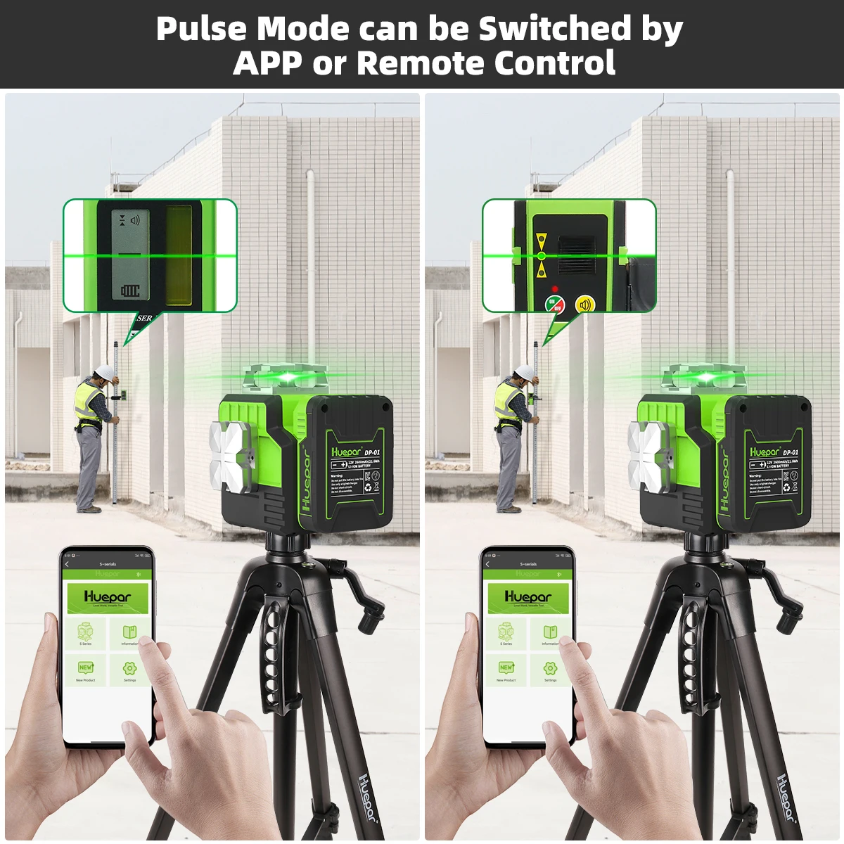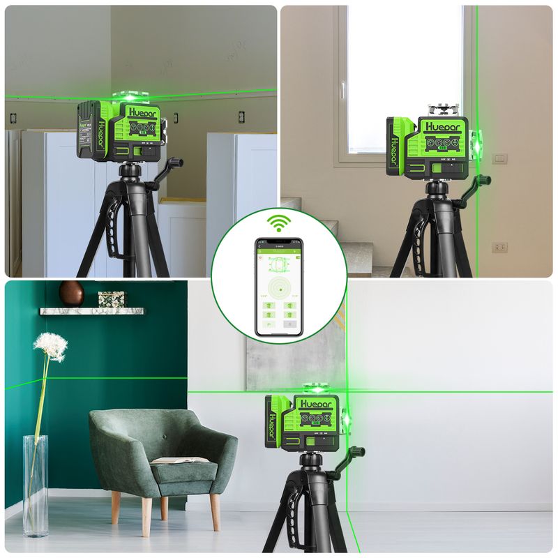 BLUETOOTH TECH & HIGH VISIBILITY: Bluetooth connectivity enables to control ON/OFF the pulse mode and select the laser planes with Huepar App or remote control. This self-leveling laser level adopted the bright Osram’s green laser unit, which is resistant to temperature changes and has higher stability. The green beam is twice bright as the red laser with a working range up to 130 feet of accuracy within ±1/9 Inch at 33 Feet. The outdoor pulse mode helps extend the laser range up to 200ft .