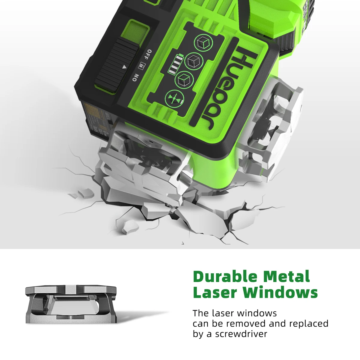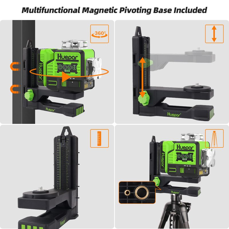 MAGNETIC BRACKET&MOUNTING THREADS: This green line laser offers 1/4"-20 and 5/8"-11 mounting threads for being fixed on tripod or magnetic bracket. The strong magnetic bracket allows for quick positioning to metal surfaces helping hang the laser level for wall applications and can be rotated to the required angle. The magnetic base also has 1/4"-20 & 5/8"-11 mounting threads to suit for different tripod threads. Metal laser window design withstands tough worksite conditions.