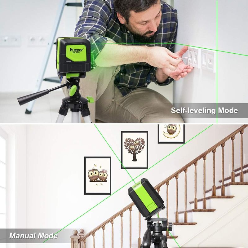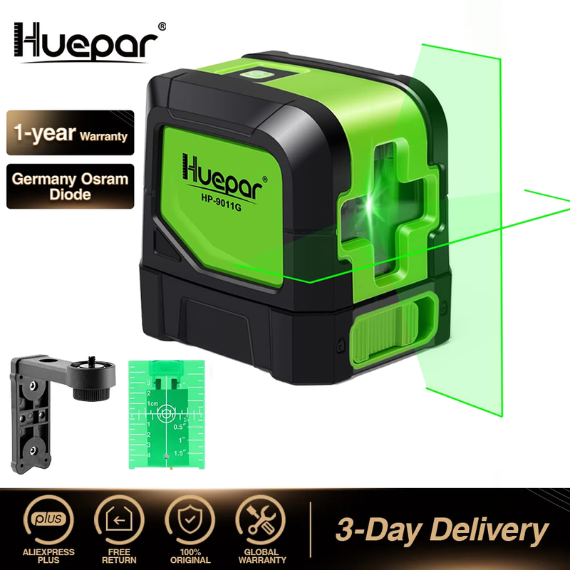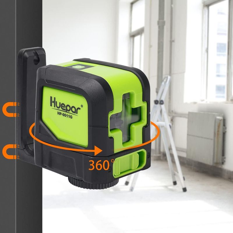 Huepar 9011G 2 Lines Laser Level Self Levelling (4 degrees) Green Beam Laser Horizontal & Vertical Cross-Line with Magnetic Base