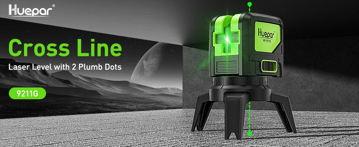 2-IN-1 TOOL: Lay out two green beams with a combination of up and down points from floor to ceiling, the expanded angle can be reach to 180 degrees. Huepar 9211G combines all the features of 9011G plus two dots.