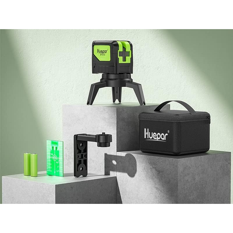 Huepar 9211G Cross Line Laser Level with 2 Plumb Dots Green Beam Self Leveling 180-Degree Self-Leveling Alignment Laser Tools