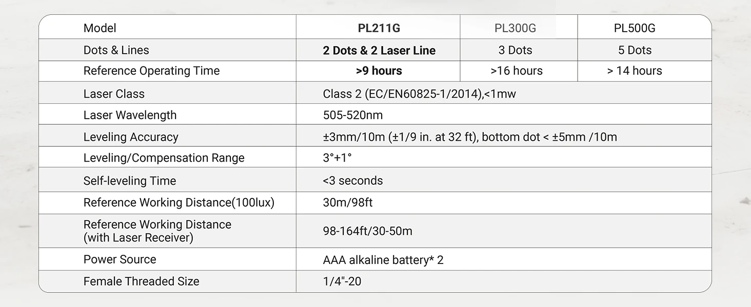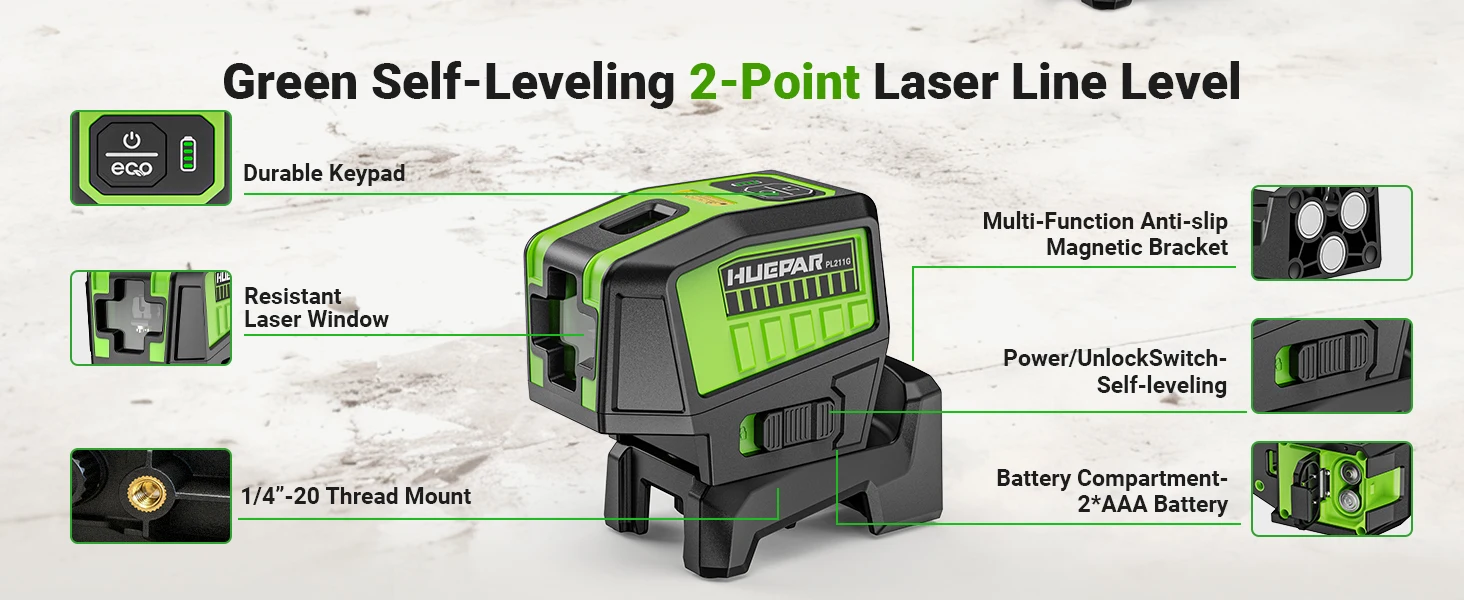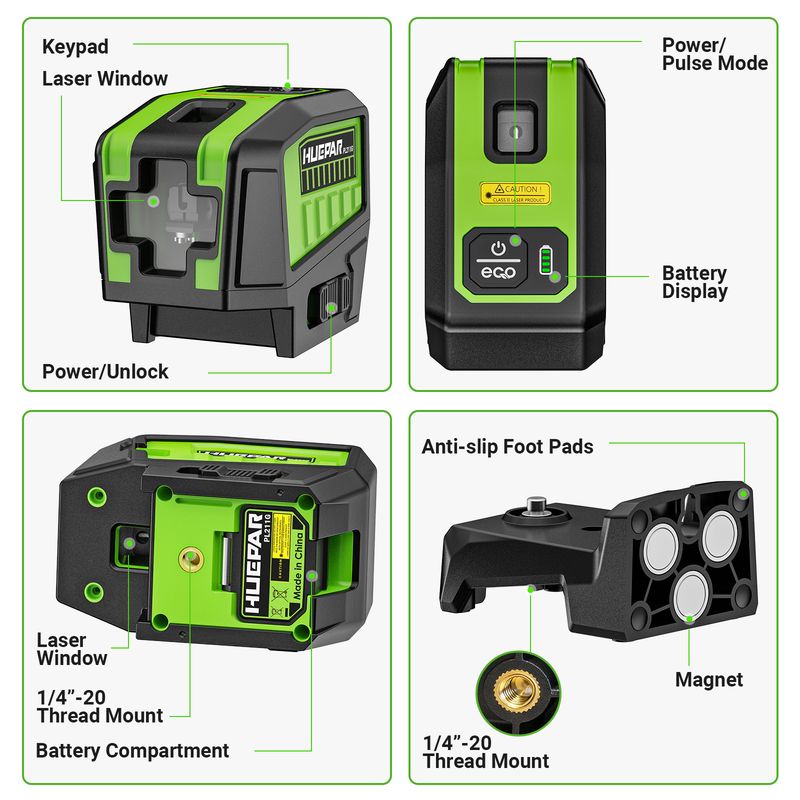 * Working Distance (Line): 30M, 40M-50M with Huepar Receiver LR-5RG/LR-6RG