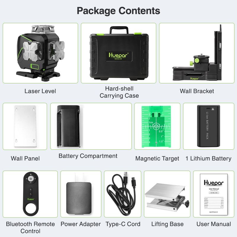 Huepar S04CG 16 Lines 4D Green Laser Level Specifications: