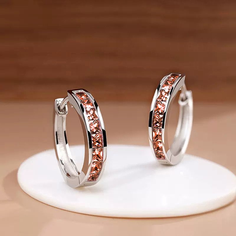 Huitan Classic Design Women Hoop Earrings Full with Princess Square CZ Simple and Elegant Female Accessories Versatile Jewelry