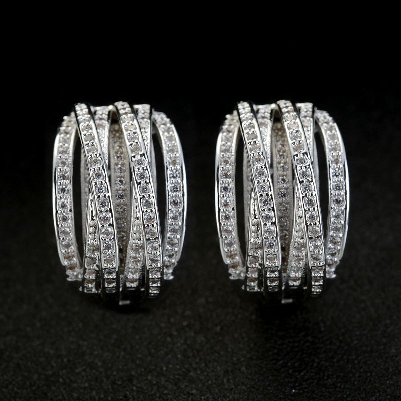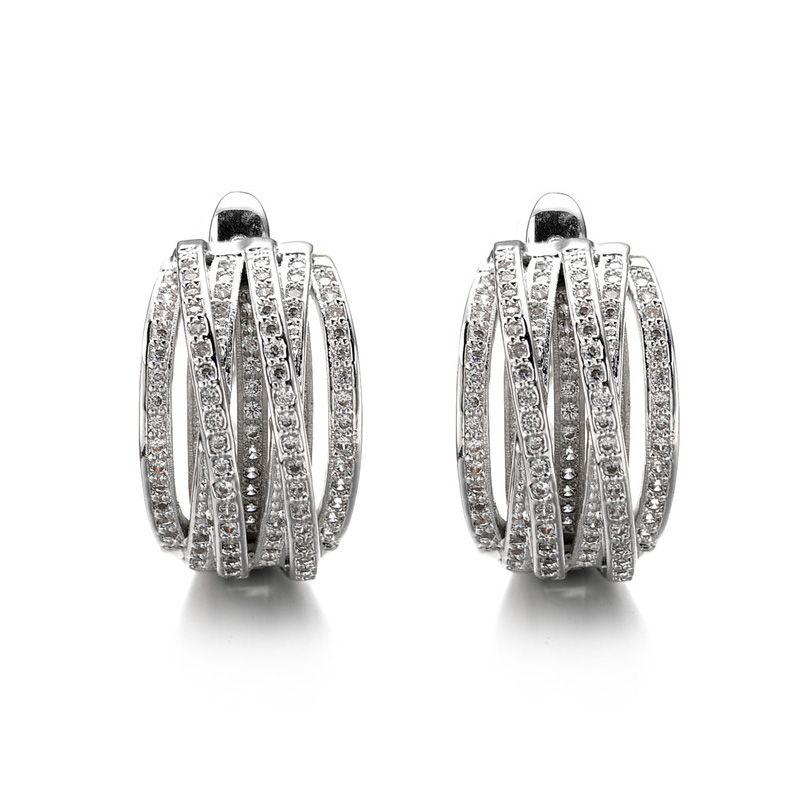 Huitan Fashion Silver Color Cross Hoop Earrings for Women Full Crystal Cubic Zirconia Statement Female Earrings Trends Jewelry