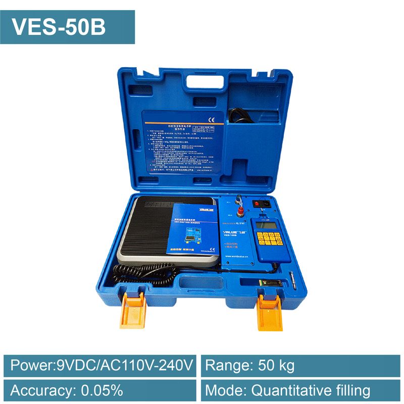 HVAC Refrigerant Charging Scale 50kg 100kg Manual Quantitative Filling 0.05 Percent Accuracy LCD Backlight DC9V/AC110-240V