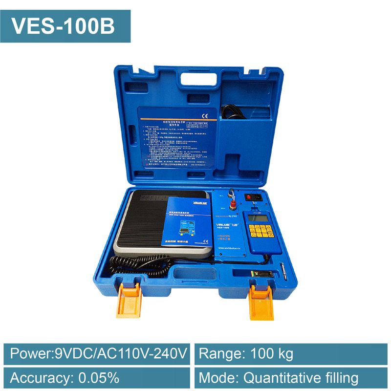 HVAC Refrigerant Charging Scale 50kg 100kg Manual Quantitative Filling 0.05 Percent Accuracy LCD Backlight DC9V/AC110-240V