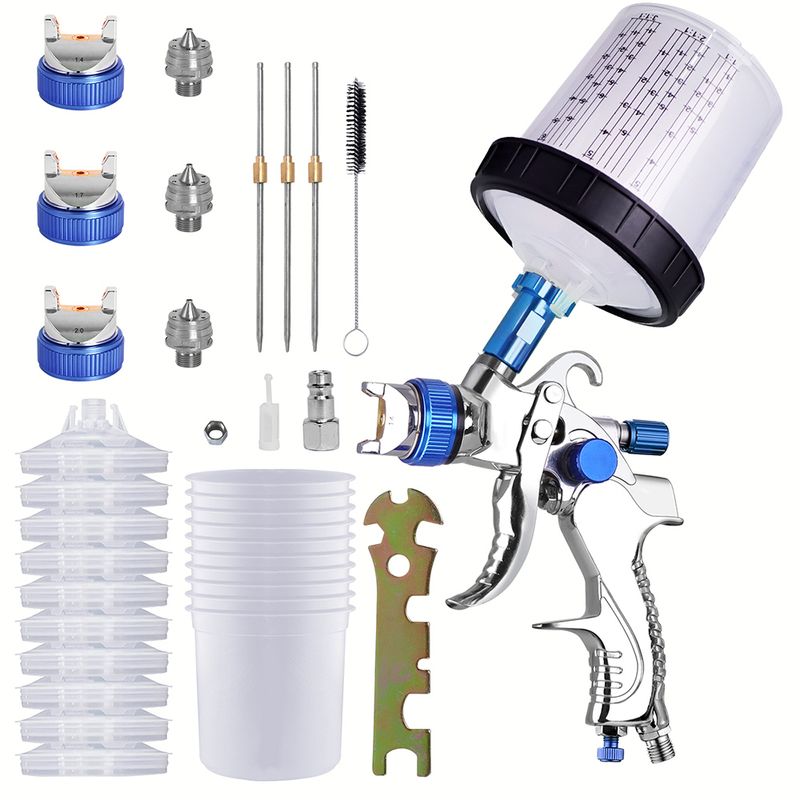 HVLP Spay Gun 1.4/1.7/2.0mm Nozzle Gravity Airbrush For Car Painting Tool 10pcs 600ml No Clean Disposable Measuring Cup