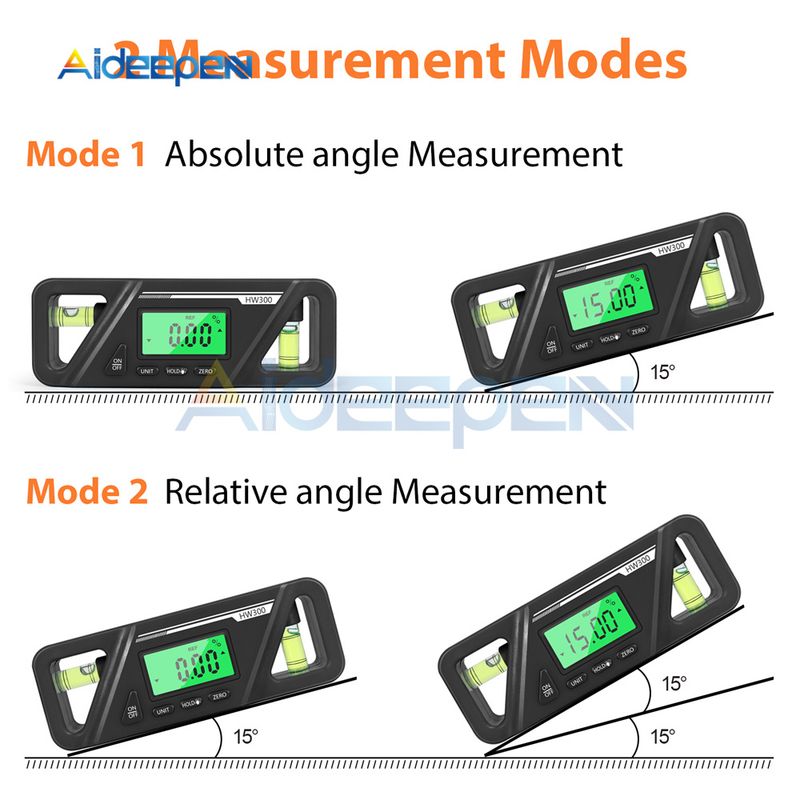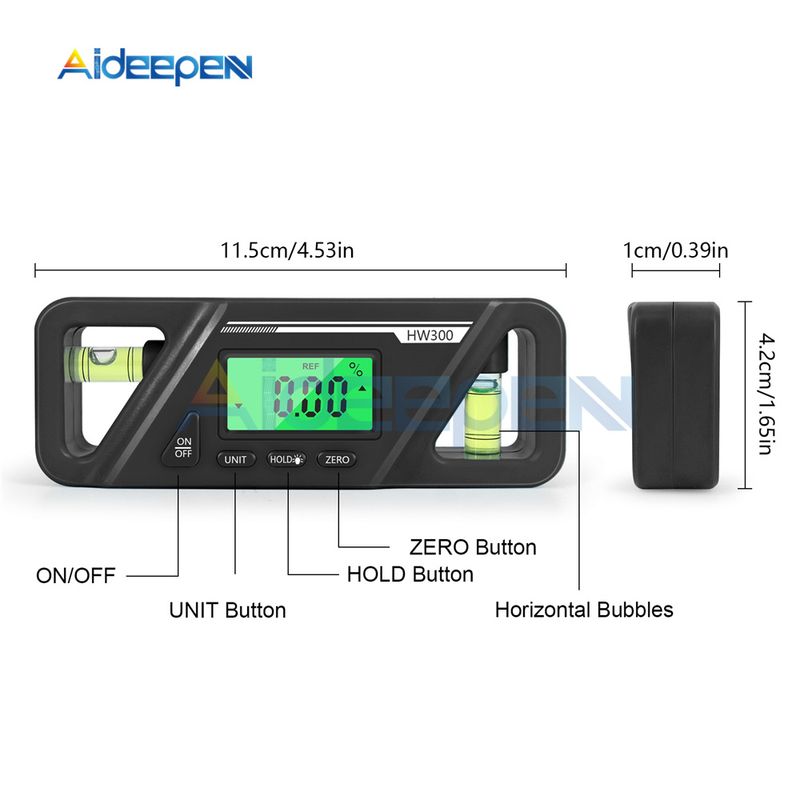 HW-300 90 Degree Ruler Mini Magnetic Digital Display Protractor Inclinometer Water Proof Level Box Angle Measuring Finder Level
