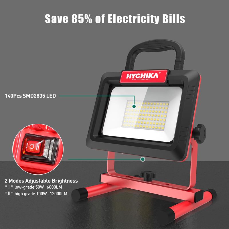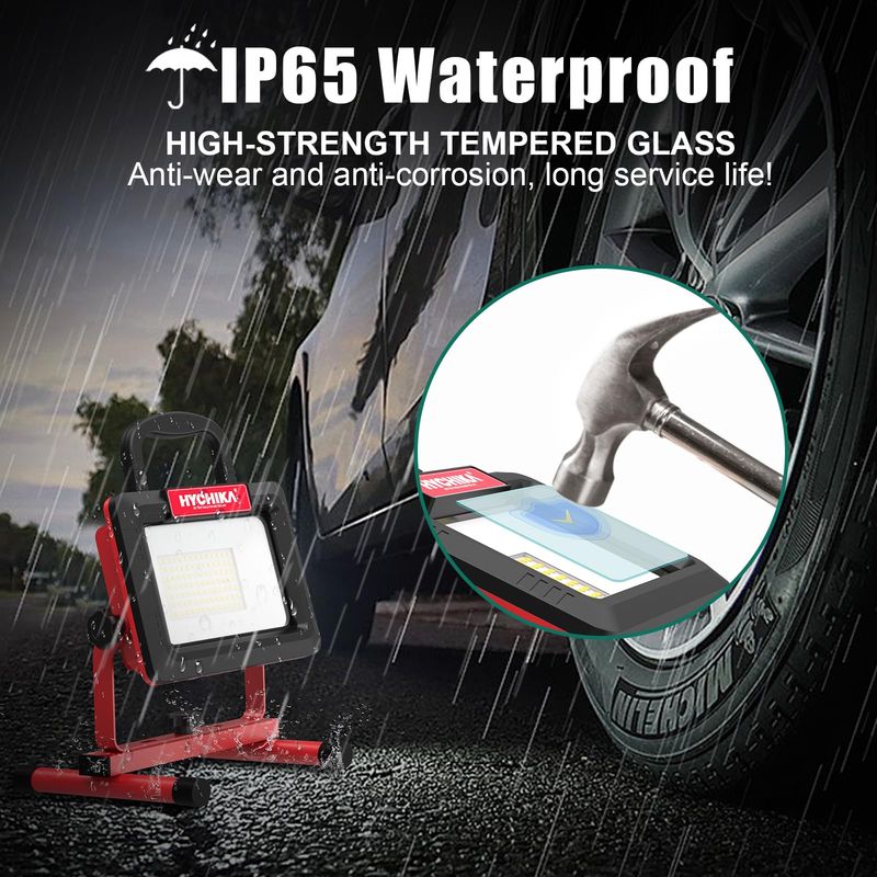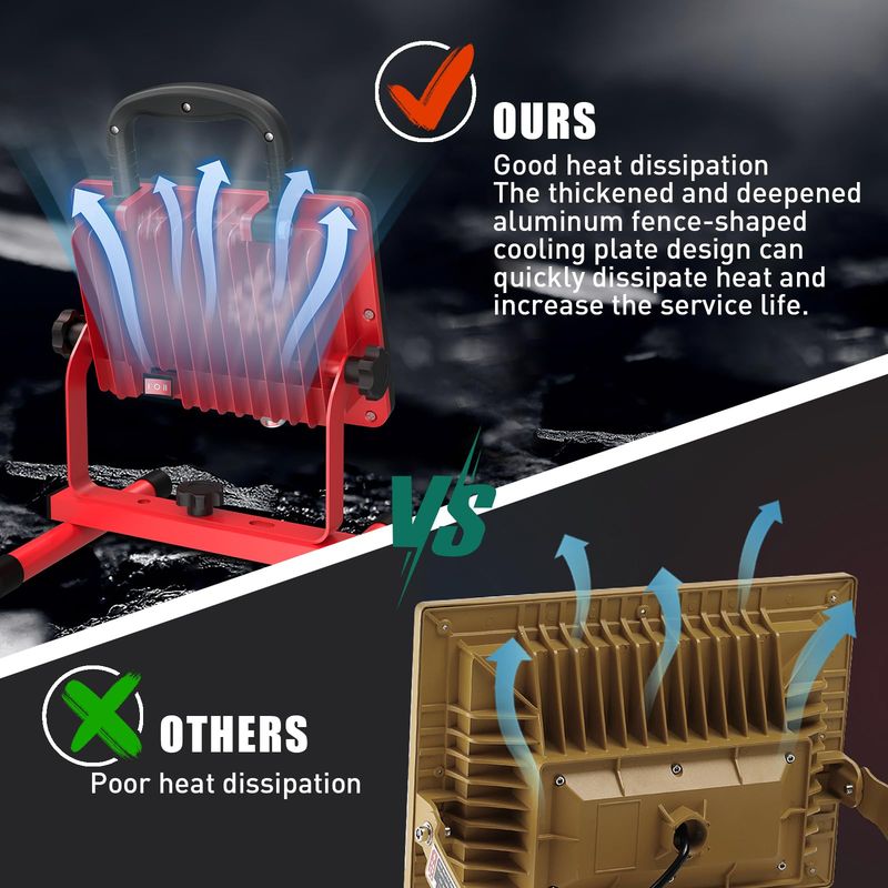 【Two Brightness Modes and Widely Used】Low grade mode: 50W and 6000LM, high grade mode: 12000LM. It can meet the different lighting needs of car repairs, construction sites, homes, etc., and can also be used for outdoor lighting.