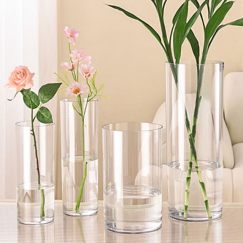 Hydroponic Plants Acrylic Cylinder Vase Fresh Flowers Candles Transparent Flower Vase Durable Shatterproof Decorative Bottles