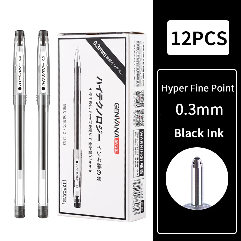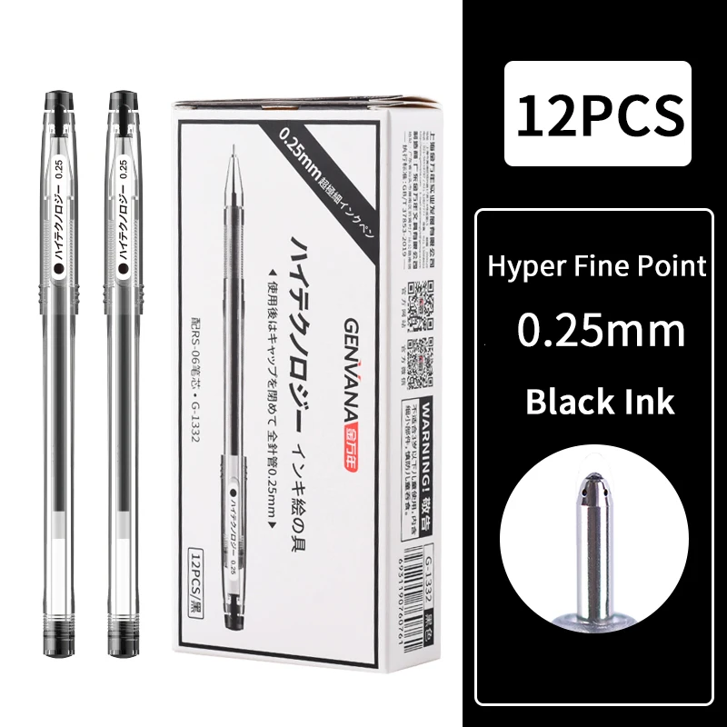 Hyper Fine Point,0.25mm,0.3mm,0.4mm,Gel Ink Pen, Black Ink,Smooth Writing for Teachers Office & School Supplies