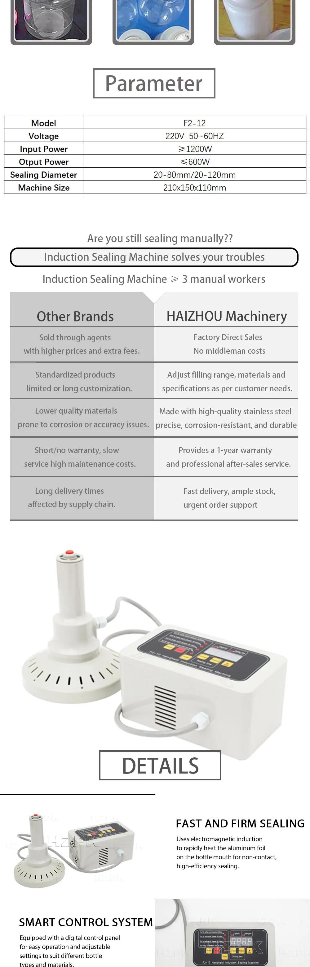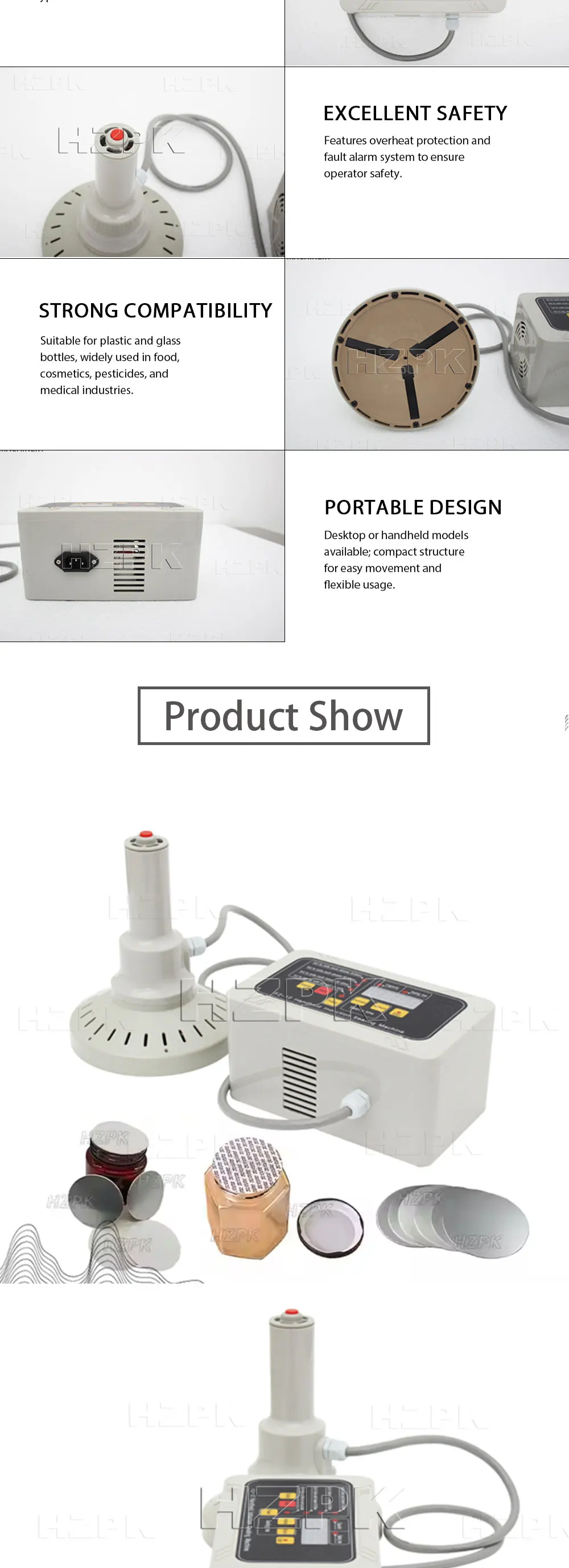 📋 Detailed DescriptionThe F2-12 Electromagnetic Induction Sealing Machine is engineered for fast, reliable aluminum foil sealing on plastic and glass bottles. Its advanced induction coil heats the foil liner in seconds, creating an airtight, leak‐proof seal that preserves product freshness and prevents tampering.