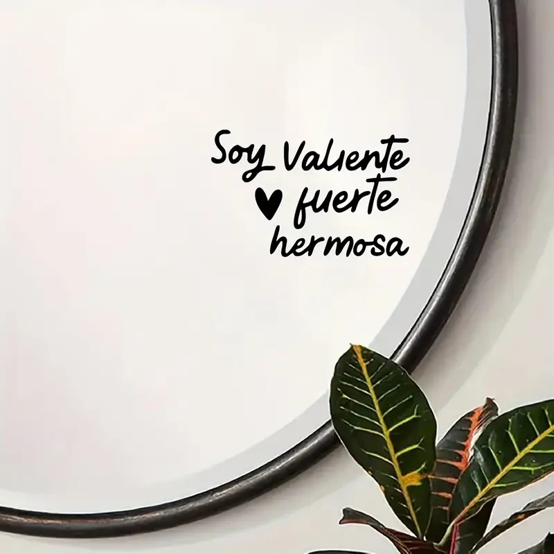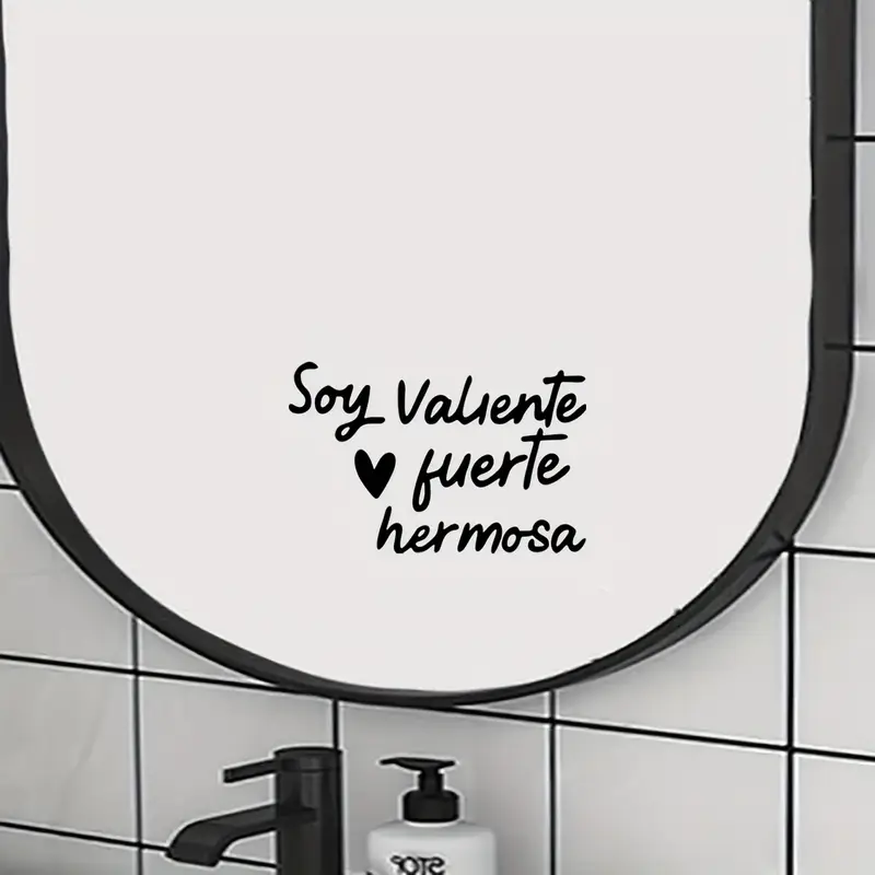 I am Brave, Strong and Beautiful" Inspirational Quote Mirror Sticker - Waterproof Vinyl, Self-Adhesive Decoration for Bathroom Mirrors, Windows, and Walls, Featuring Heart and Floral Design, Bathroom Mirror Decor|Vibrant Graphic Sticker|Glossy Finish