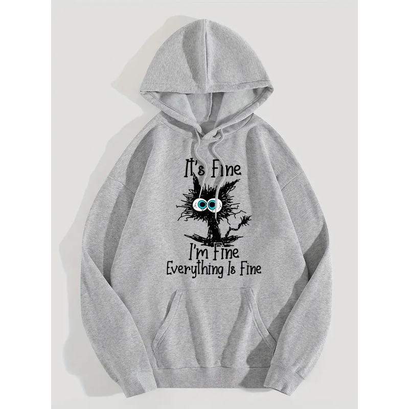 I'm Fine Everthing Is Fine Letter Printed Women Hoodies Fashion Fleece Hoody Creativity Pullover Street Loose Cotton Sweatshirts