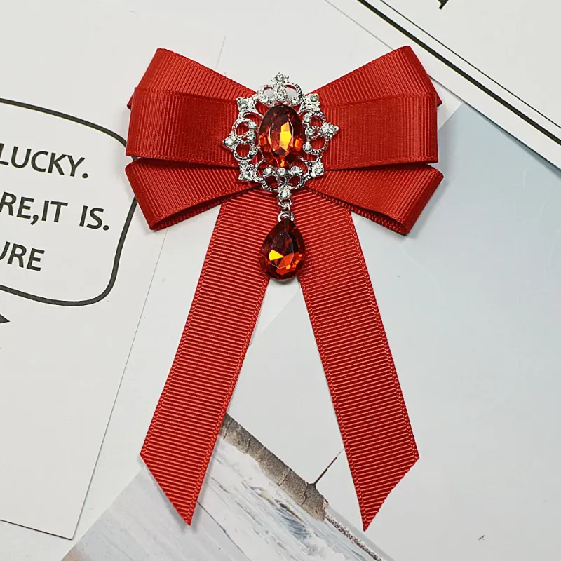 i-Remiel Fashion Red Ribbon Bow Brooch Rhinestone Crystal Fabric Cloth Art Luxury Wedding Dress Pins And Brooches Gift For Women