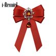 i-Remiel Fashion Red Rabbon Bow Brooch Rhinestone Crystal Fabric Cloth Art Luxury Wedding Dress Pins And Brooches Gift For Women