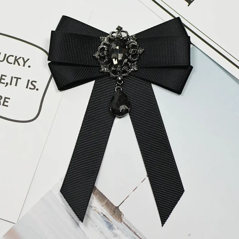 i-Remiel Fashion Red Ribbon Bow Brooch Rhinestone Crystal Fabric Cloth Art Luxury Wedding Dress Pins And Brooches Gift For Women