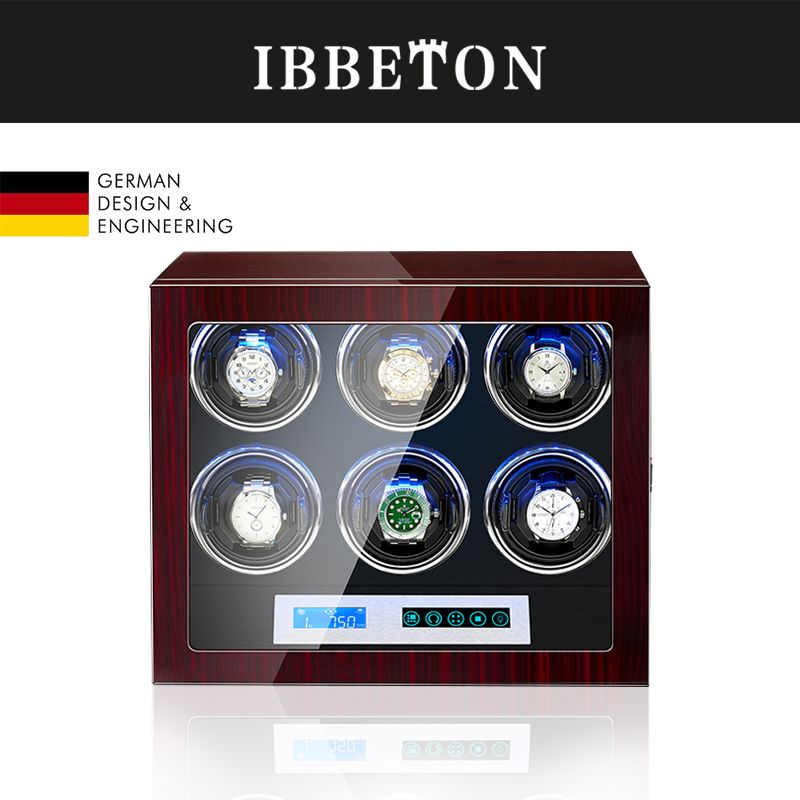 IBBETON Brand Automatic Watch Winder 3 4 6 9 12 Slot Mabuchi Mute Motor LCD Touch Screen and Led Light Wooden Watch Safe Box