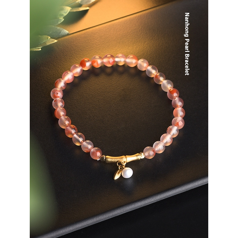 Ice Float Nanhong Agate Bracelet Girlfriends' Gift Feeling Light Luxury Pearl Style