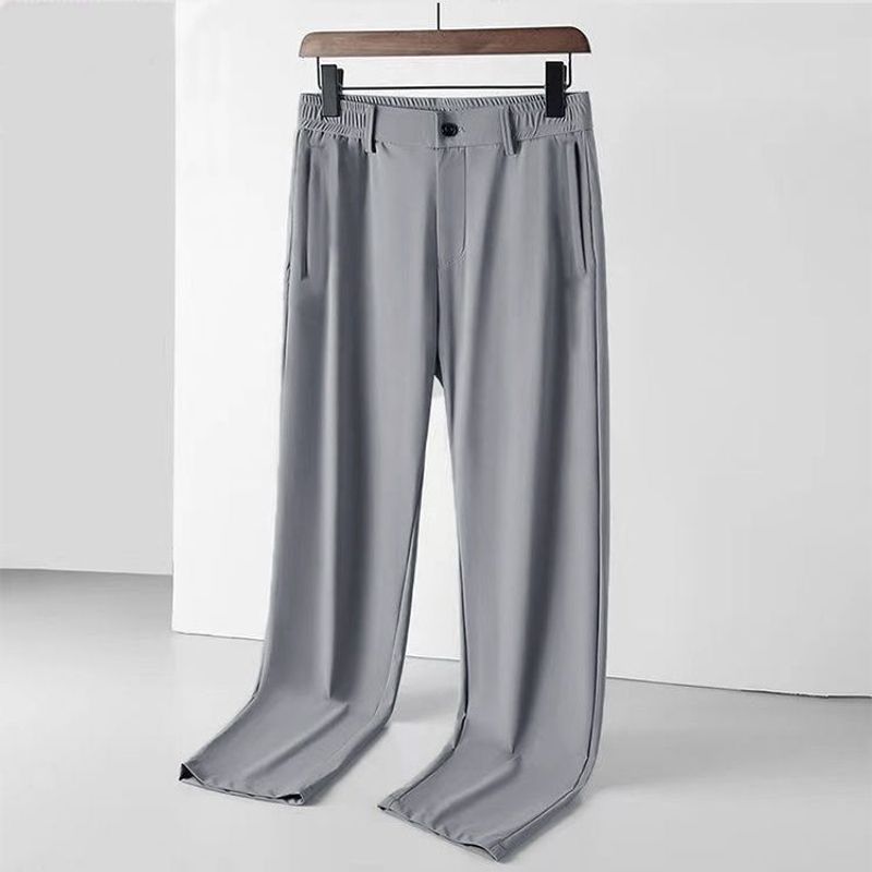 Ice Silk Leisure Straight Loose Trousers Men Light Gray 42
