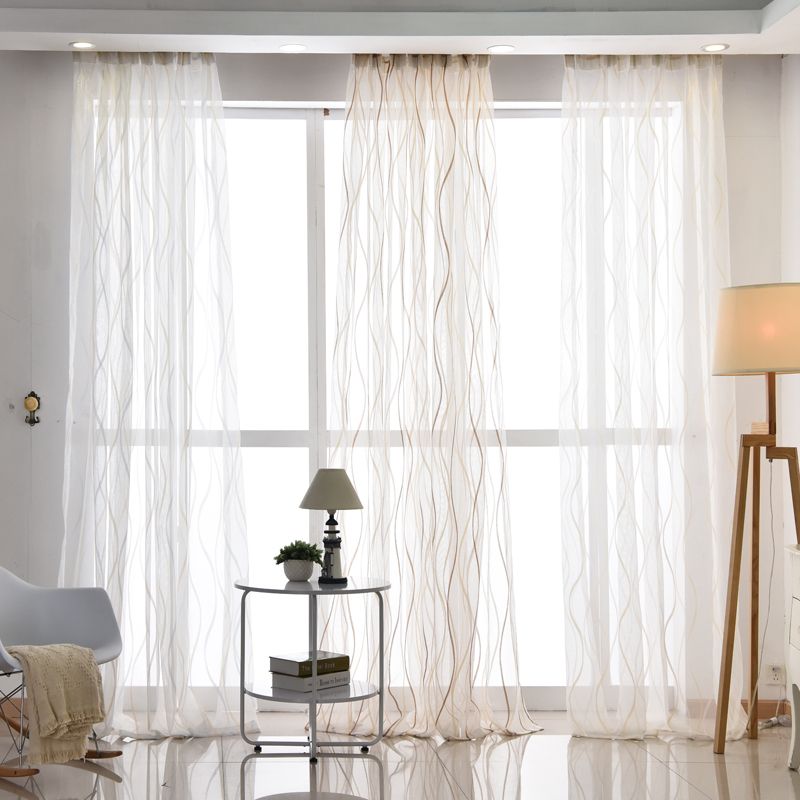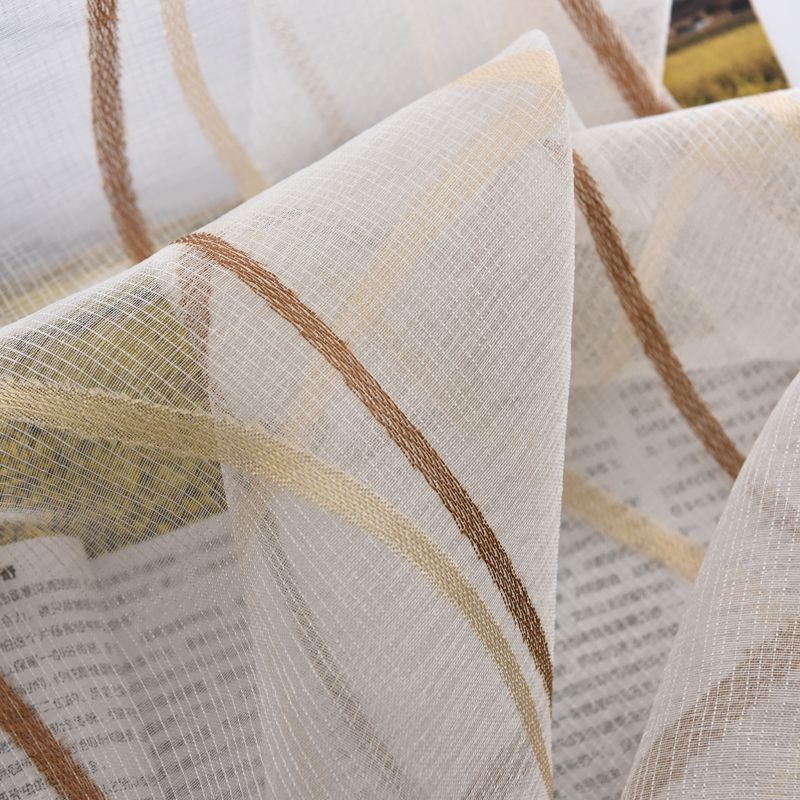 ICECUR Simple Stripe Jacquard Voile Tulle Curtains for Kids Bedroom European Style Window Curtains Home Decor Perspective