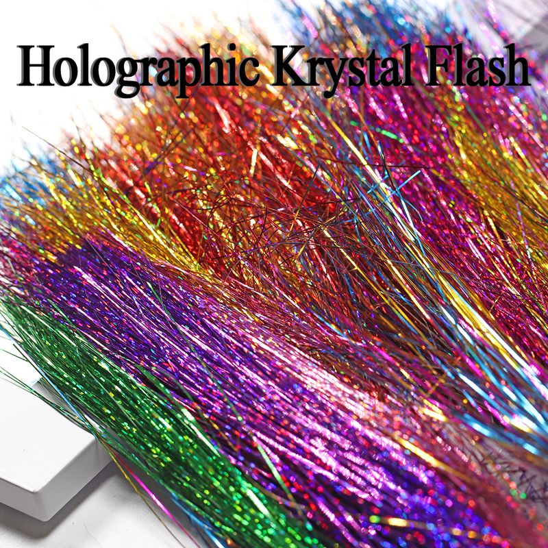 ICERIO Soft Holographic Flat Krystal Flash Tinsel Flashabou Fly Tying Material Pike Trout Streamers Jig Fishing Hook Lure