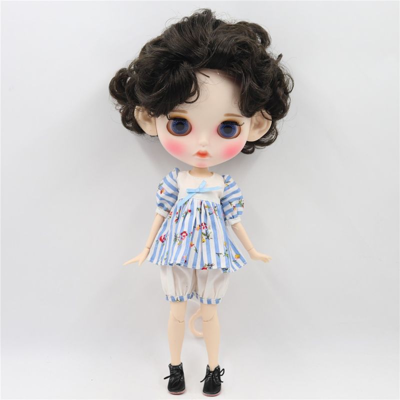 ICY DBS Blyth doll 1/6 toy white skin joint body bjd black hair matte face with eyebrow custom doll 30cm