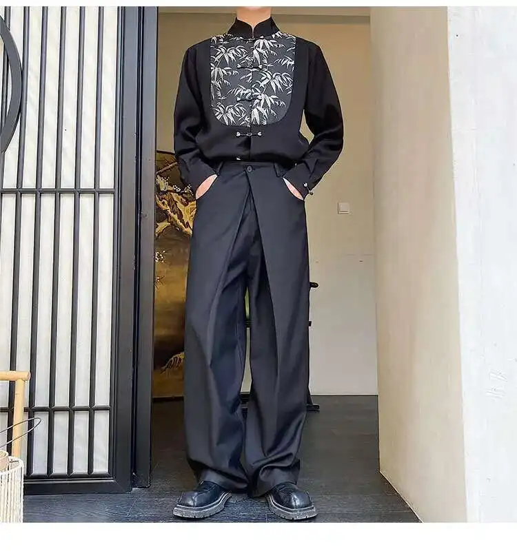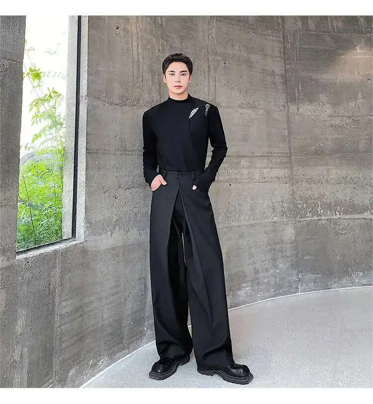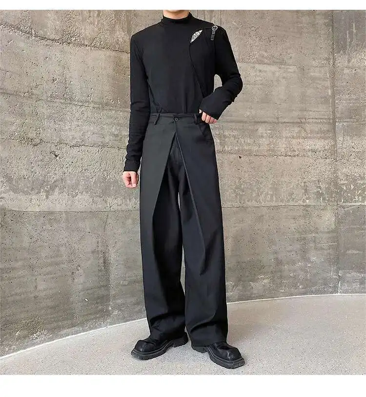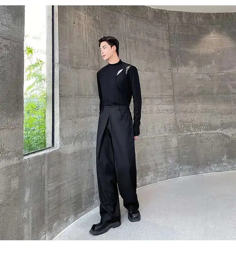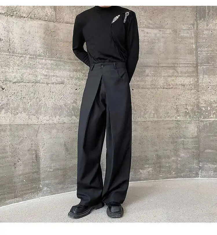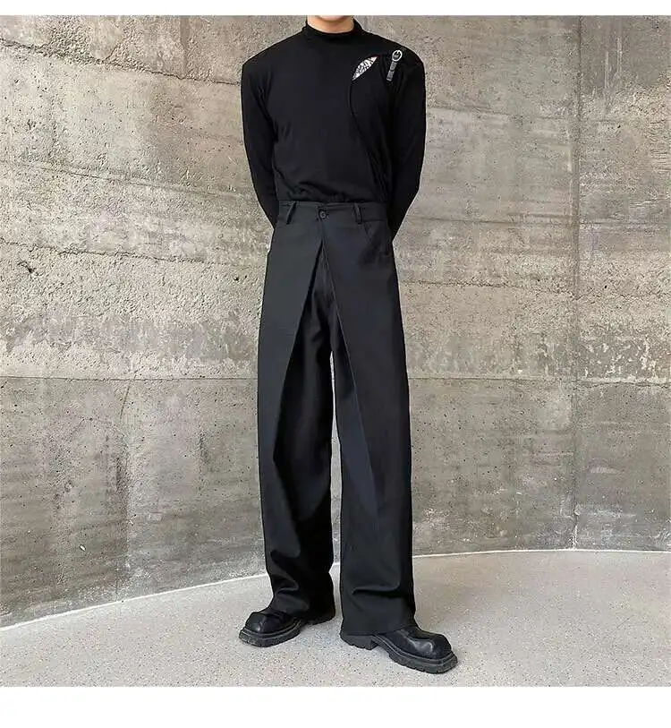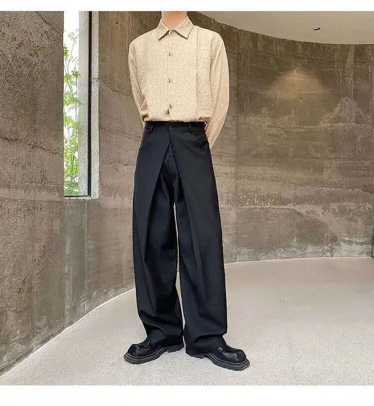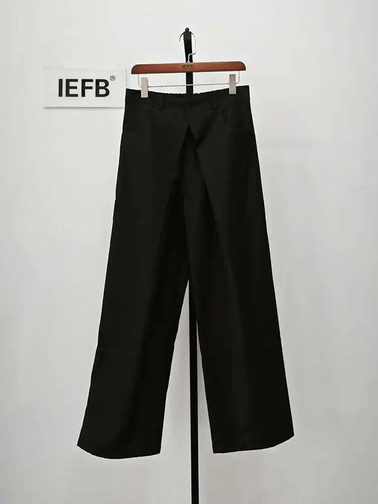 IEFB Men's Trousers Baggy Casual Pants Autumn New Pleated Double Waistband Niche Design Trend Korean Straight Leg Pants 9C2189