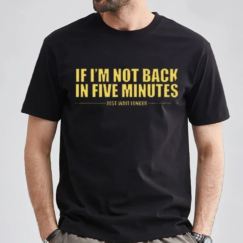 If I'm Not Back In Five Minutes Just Wait Longer Men T-shirt Fashion Unisex Streetwear Funny Quote Tops Ropa Hombre Masculinas