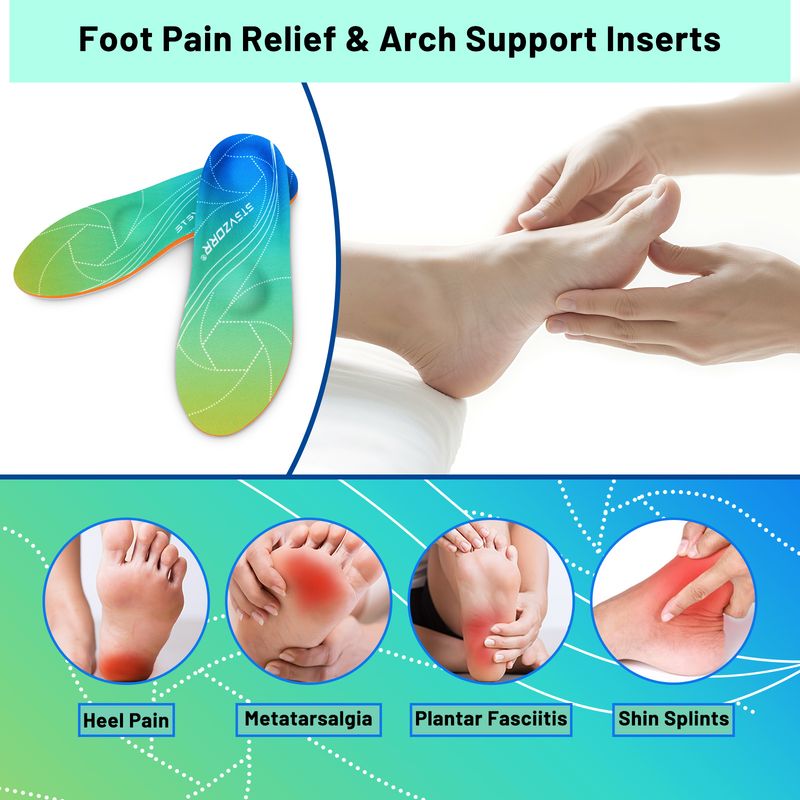 Engineered for individuals weighing over 220lbs, arch support inserts offer exceptional support, especially for arches. With 35MM arch height suitable for low, neutral and high arch. Evenly disperse pressure on feet, reduce fatigue and absorb shock of impact while walking & standing, resulting in a more comfortable experience. iFitna arch support inserts provide stability for feet and ankle to help alleviate Metatarsalgia, heel pain, heel spurs, plantar fasciitis, ball of foot pain