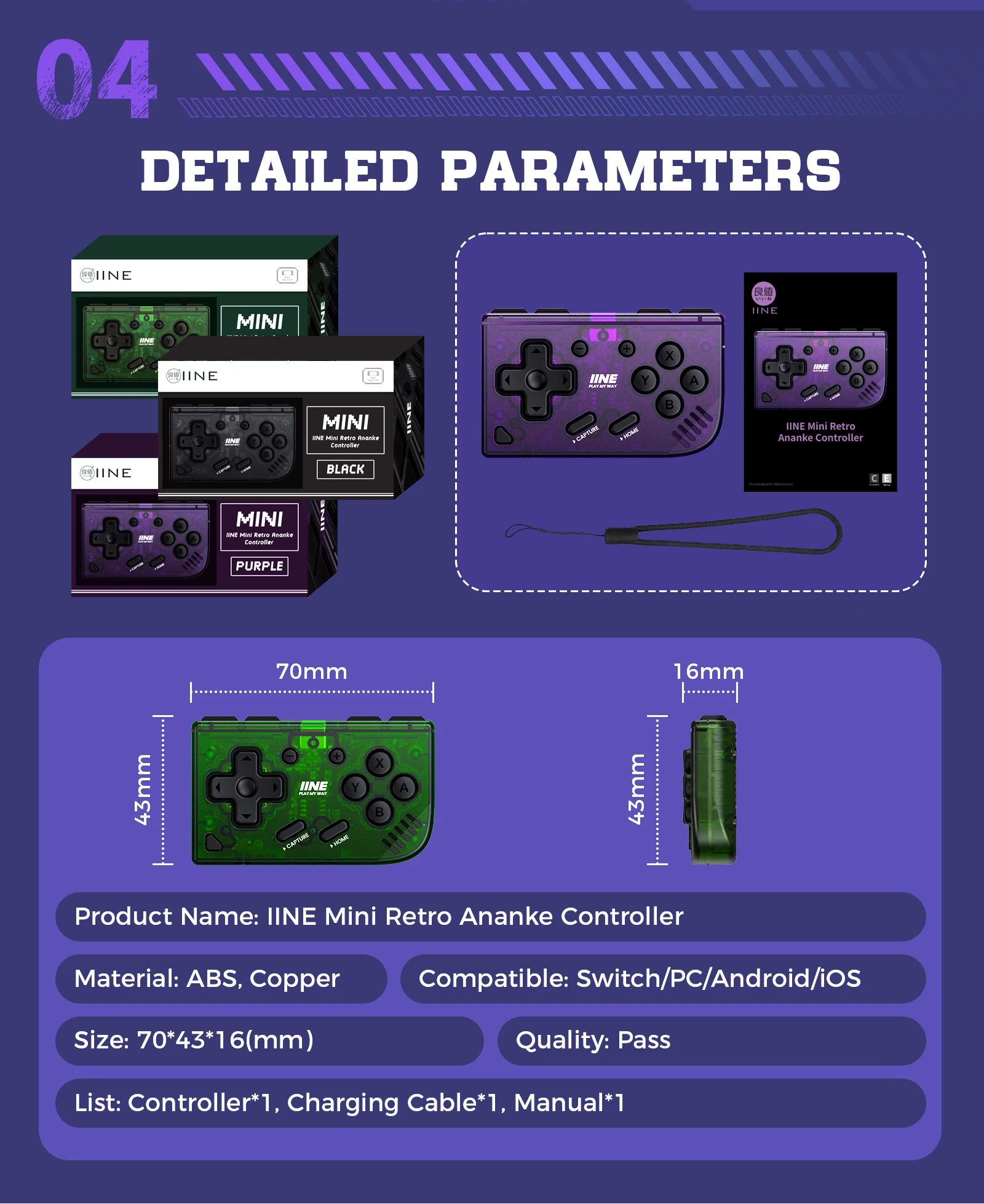 IINE Mini Retro Ananke Controller/ Turbo function & Interchangeable joystick and D-pad & Multi-platform controller & ZL and ZR B