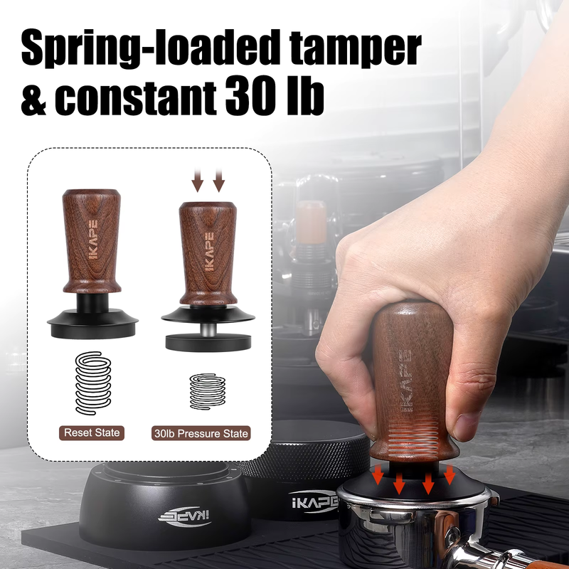 IKAPE Espresso products Set, Coffee Tool Set with Rotary WDT Tools and Wooden V3 tamper and distributor, Three-piece suit, Black
