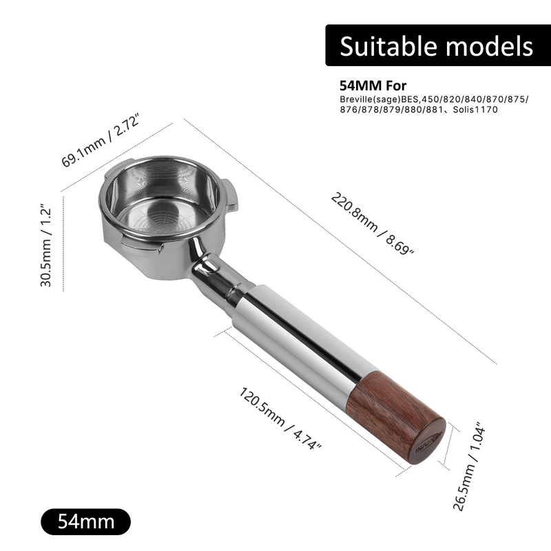 54 Breville bottomless Portafilter is compatible with Breville coffee machines BES870/878/880, BaristaExpress, Barista Pro, Barista Touch, Duo-Temp Pro.