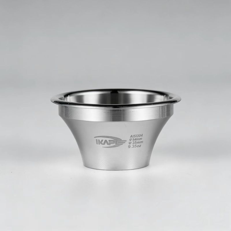 The IKAPE 58mm to 32mm step-down portafilter basket is manufactured using CNC integrated molding, resulting in a conical and trapezoidal shape that creates a tighter pressure space. The deeper depth allows for thorough pre-infusion during the pre-infusion stage.