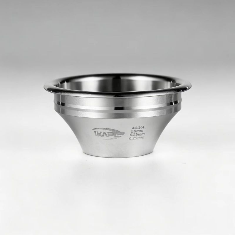 The IKAPE 58mm to 32mm step-down portafilter basket is manufactured using CNC integrated molding, resulting in a conical and trapezoidal shape that creates a tighter pressure space. The deeper depth allows for thorough pre-infusion during the pre-infusion stage.