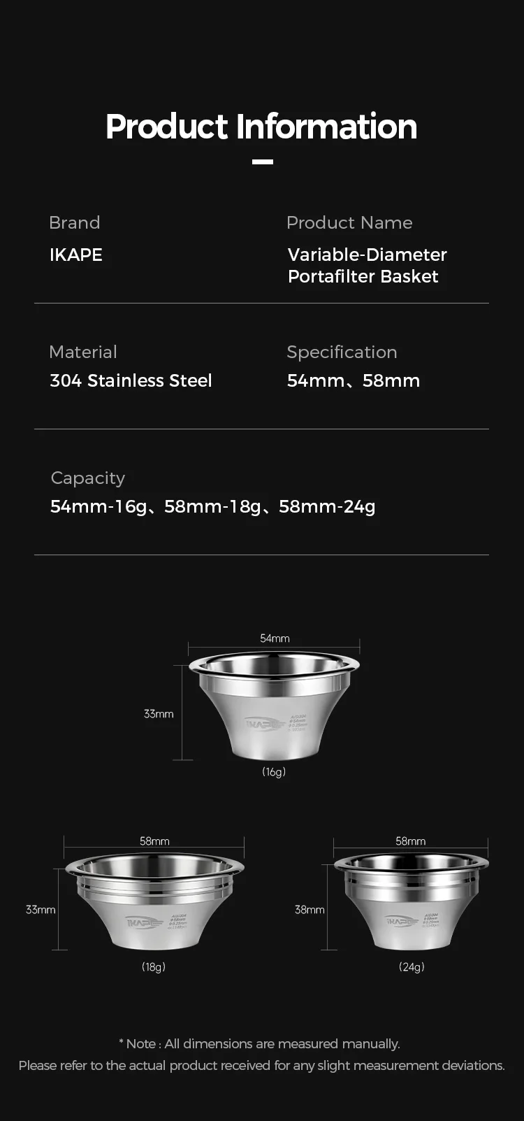 IKAPE Variable Diameter Espresso Portafilter Filter Basket Precision High Extraction for 54mm/58mm Bottomless Portafilter
