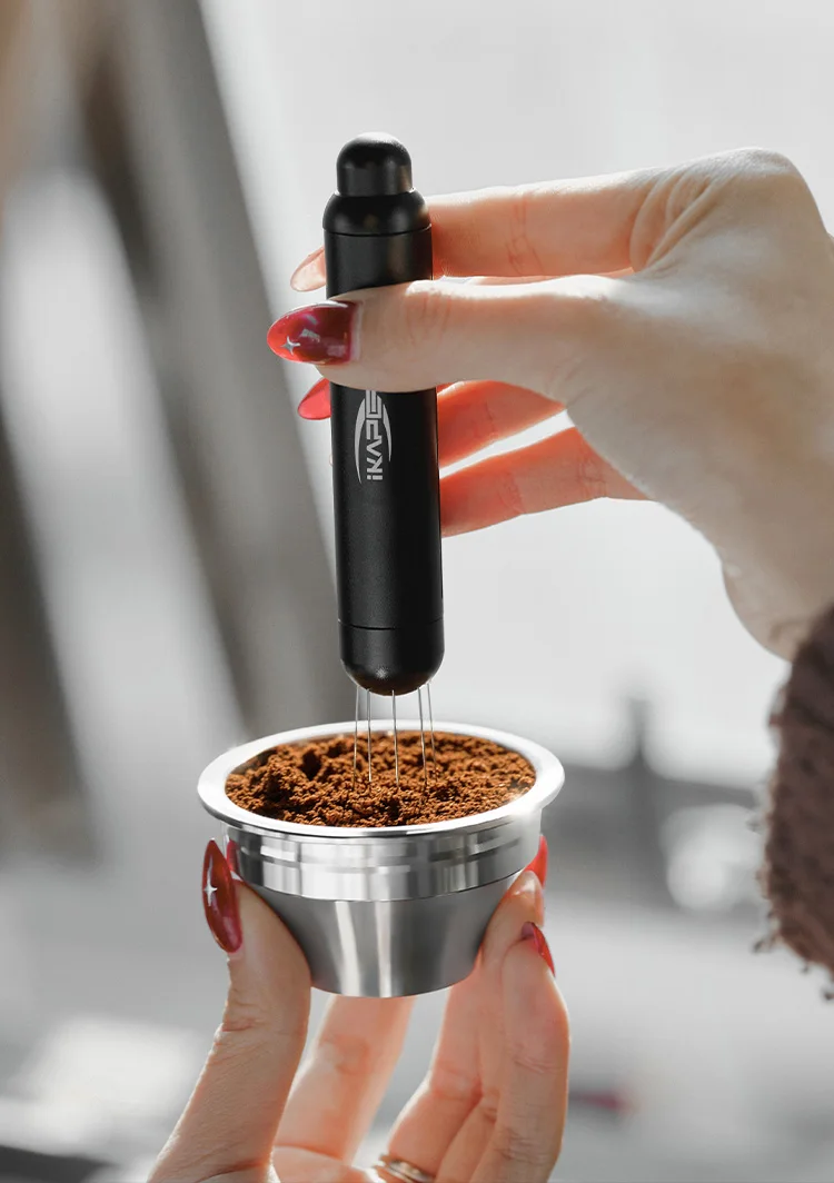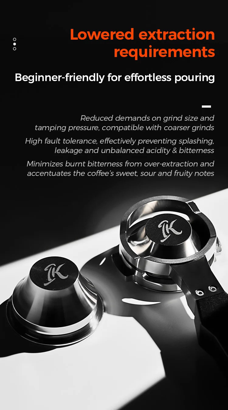 Thanks to its tapered shape, the IKAPE variable diameter basket facilitates pressure build-up. Therefore, with the appropriate grind size, espresso can be extracted without using a coffee tamper. Of course, if a coffee tamper is desired, the grind size can be adjusted to be coarser, and the coffee grounds can be leveled with a distributor before tamping.