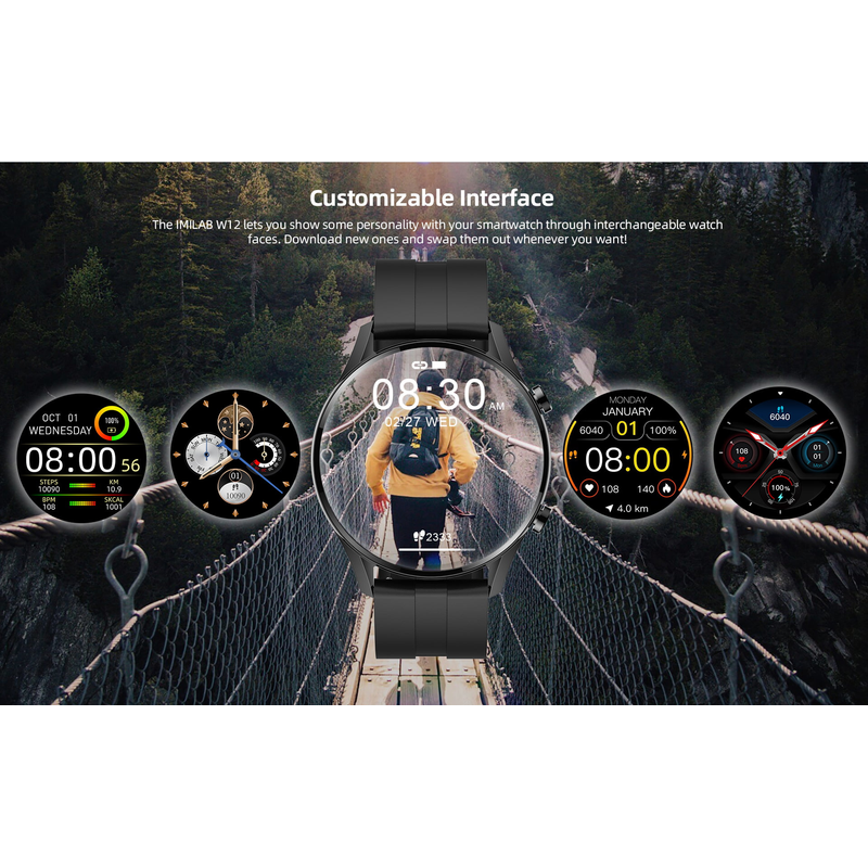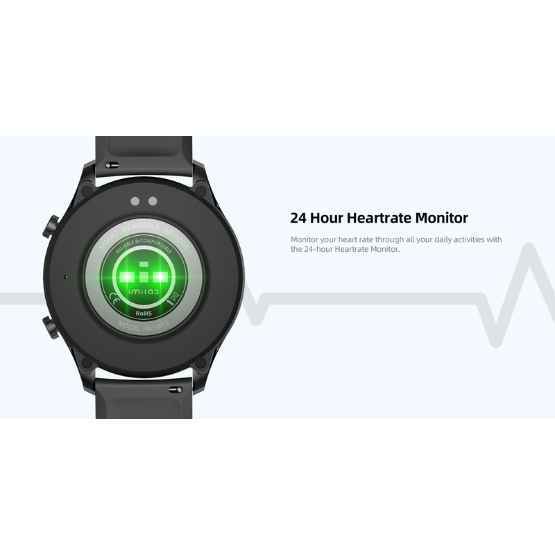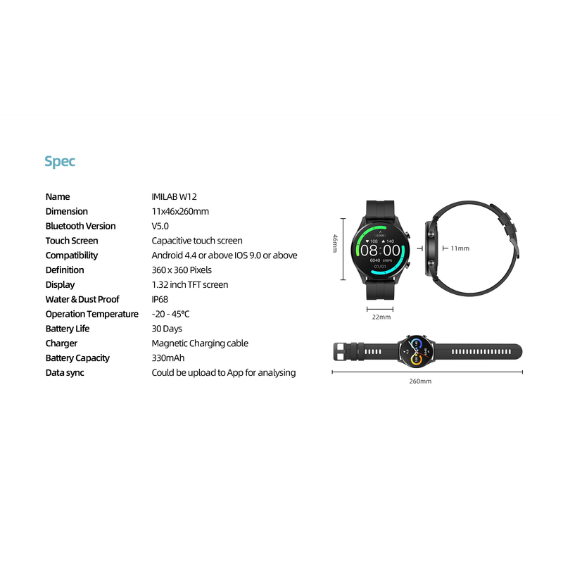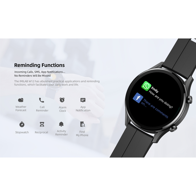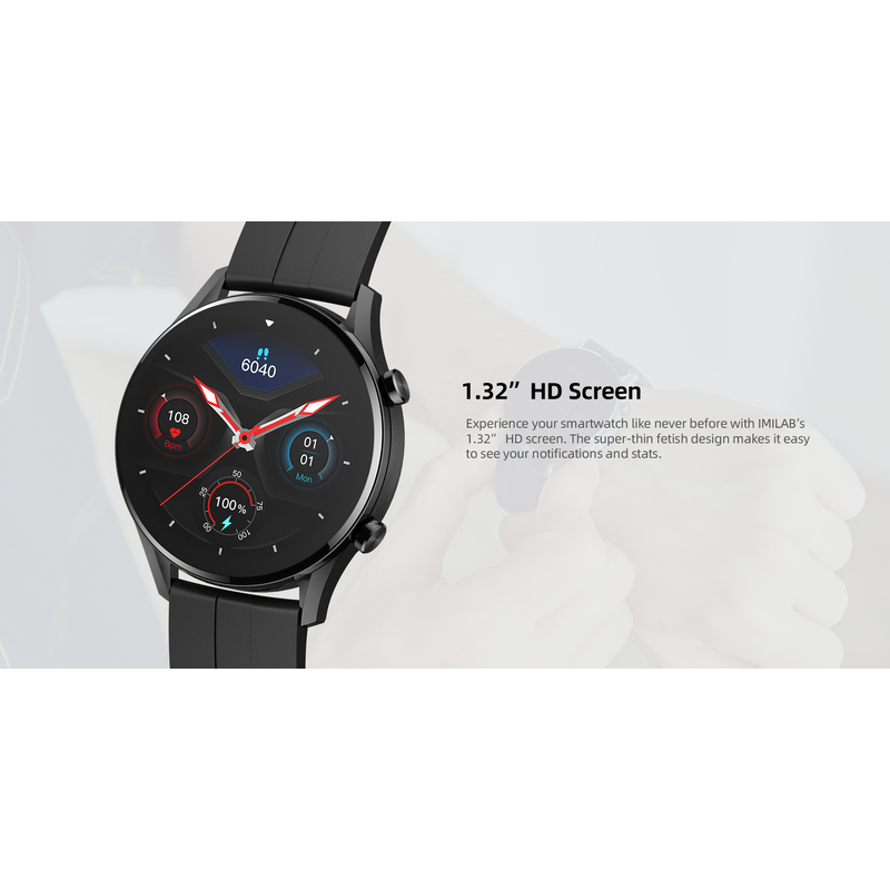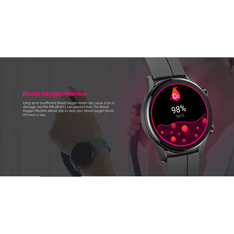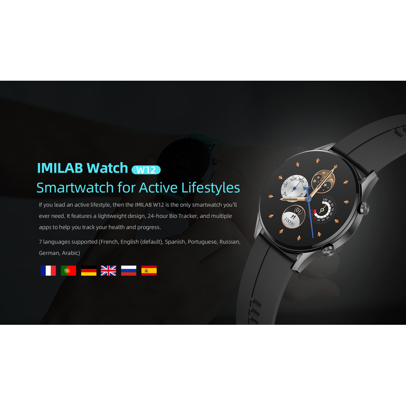 IMILAB W12 Smart Watch For Men Women Bluetooth Sports Fitness Tracker Heart Rate IP68 Waterproof -Black
