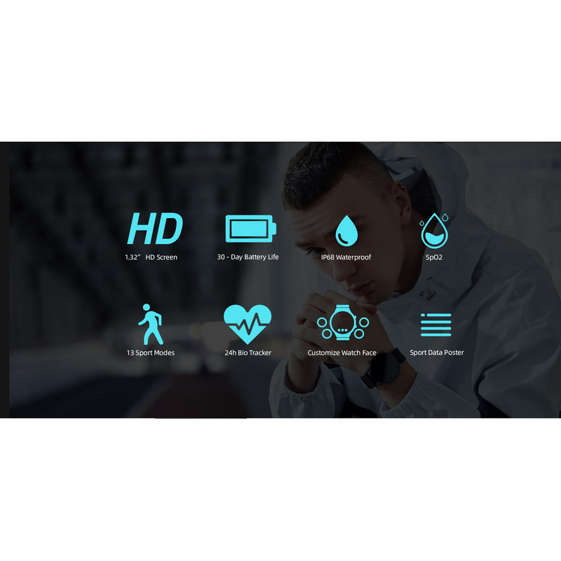 Montre connectée fitness pour homme avec cadran HD de 1,32 pouces, aspect élégant et bracelet en caoutchouc confortable, une variété de finitions élégantes au choix. Les montres intelligentes W12 sont des compagnons pratiques pour un usage quotidien et sont idéales pour les cadeaux.
