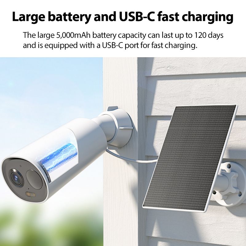 2K QHD Image | 5000mAh Large Battery | Constant Protection with Solar Panel | Smart Full-color Night Vision | IP66 Weather-resistance