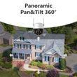 Advanced night vision technology enables the security camera to achieve early targeting across large areas in total darkness, any weather, or even fog over 98ft (30 m) away on a moonless, cloudy night, helping you reveal the secrets of the night around you.Panoramic pan & tilt for 360° protection