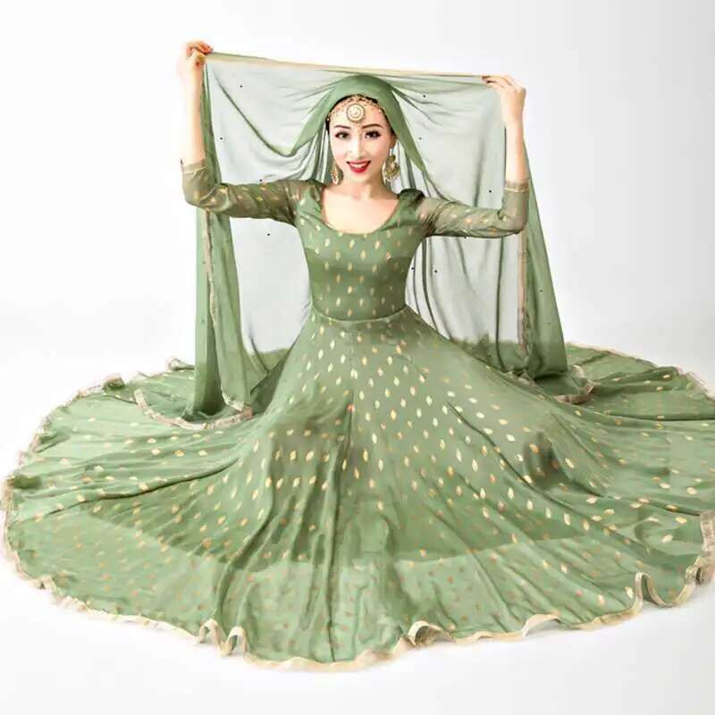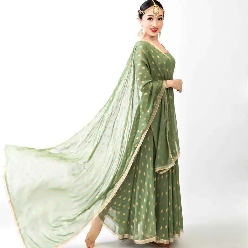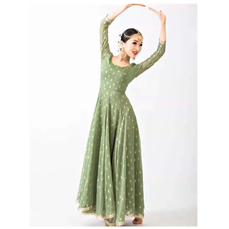 Indian Apparel Sari Anna Grand Swing Dress Silk Crepe Gold Plated Empire Double Wall Dance Performance Practice Dress Female